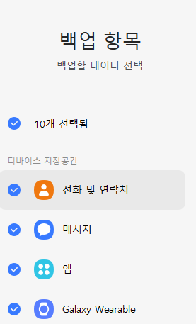4. 원하는 항목을 선택 후 백업